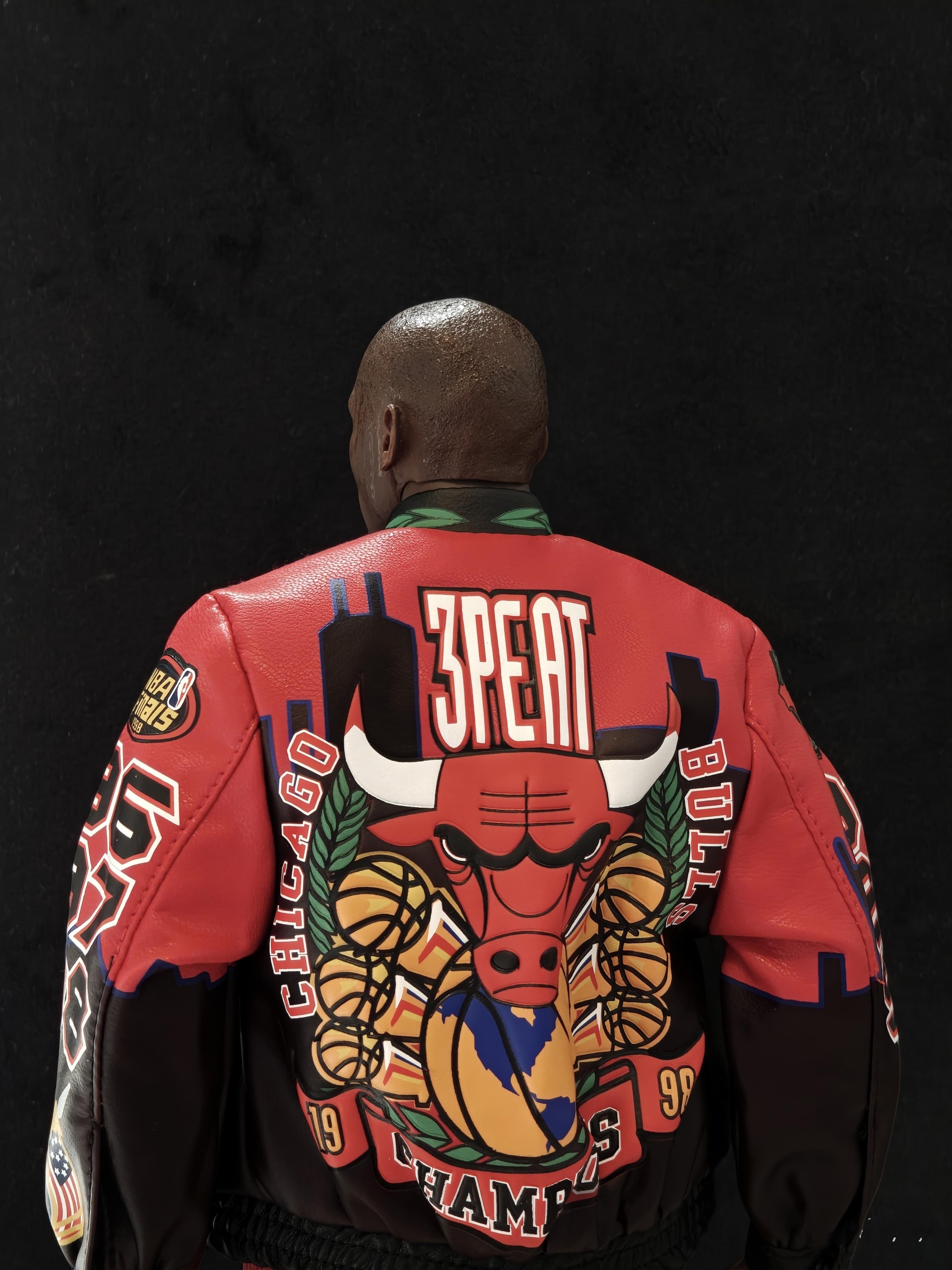 – A newly developed adjustable figure stand that can be bent and height‑adjusted, with the Chicago Bulls logo and championship dates printed on the stand base.