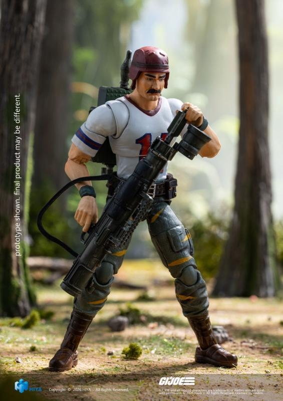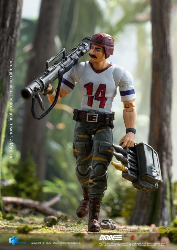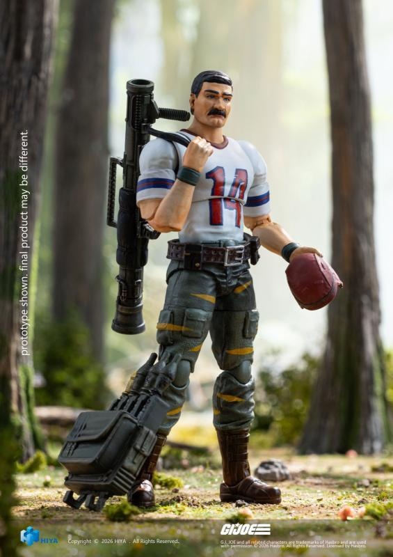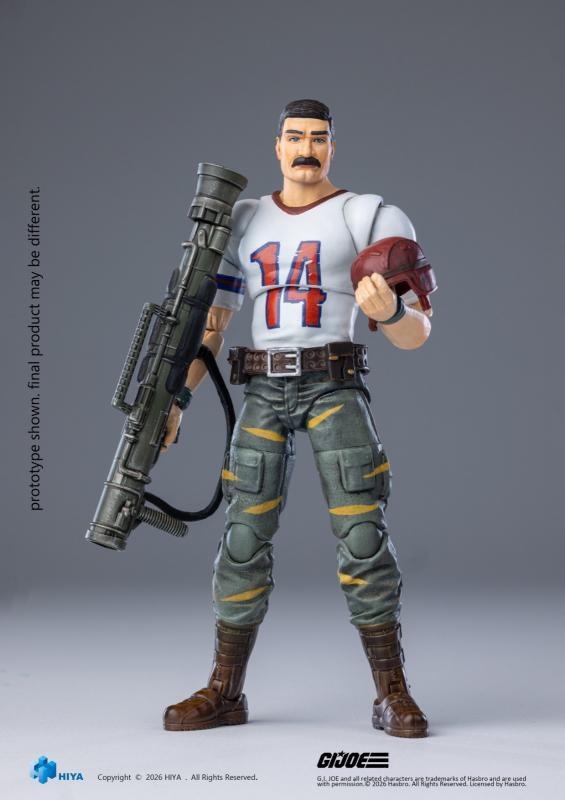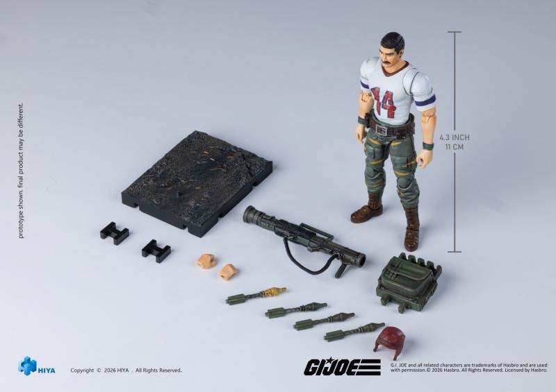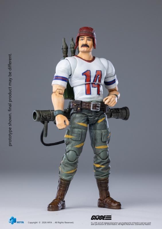 – This all‑new EXQUISITE MINI Series 1/18 Scale Bazooka Tiger Force Edition articulated figure stands approximately 11 cm tall. Based on the original visual design of the Tiger Force series, it finely recreates every detail of the character. He wears the iconic white No. 14 football jersey, paired with green combat trousers accented with yellow stripes and dark brown combat boots, creating a unique and highly recognizable look.