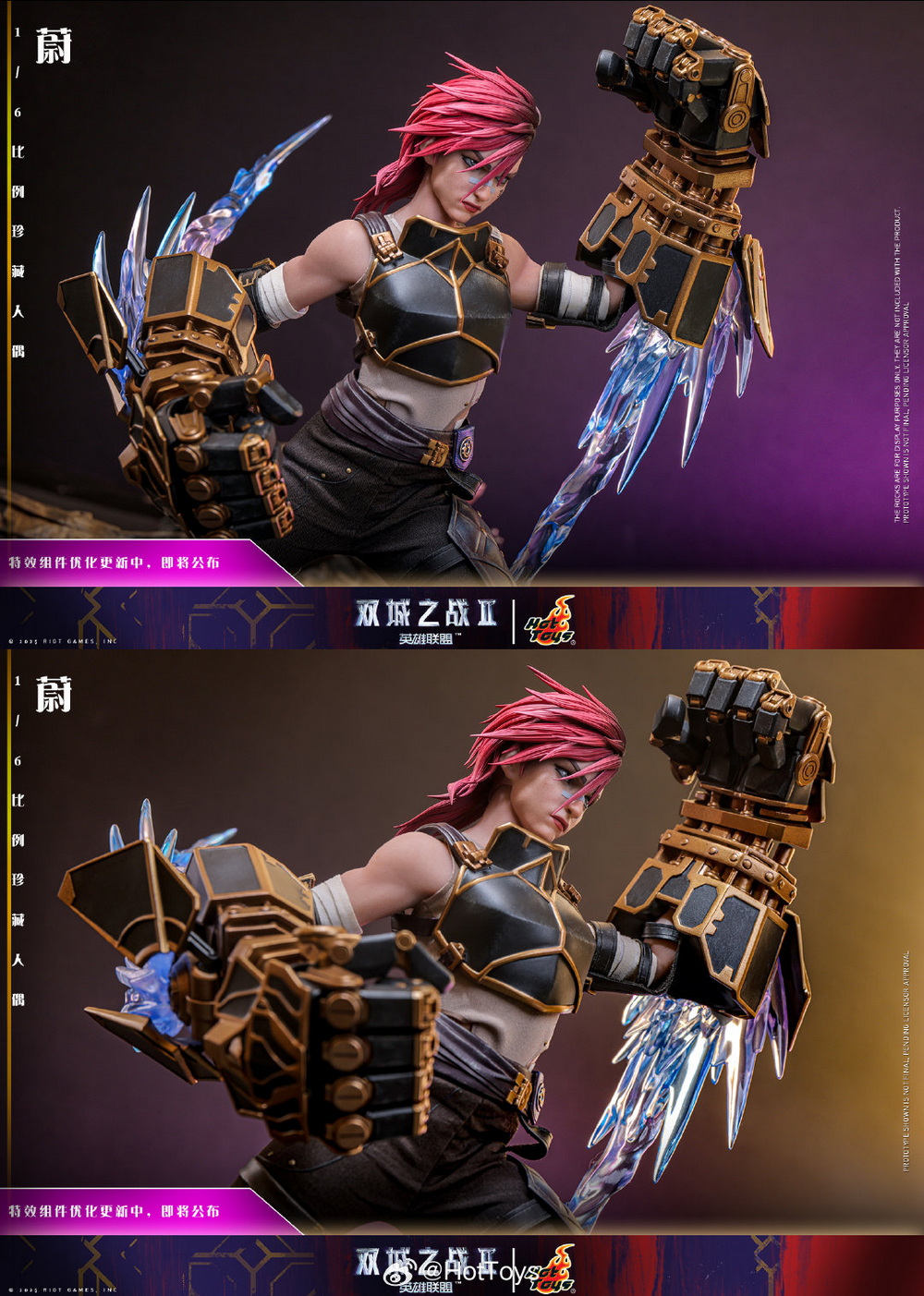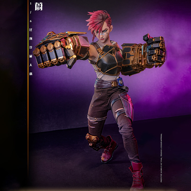 – The figure uses a specially made body that stands approximately 28cm tall and features 28 points of articulation, utilizing silicone seamless arms to hide the articulated joints and naturally showcasing Vi’s toned muscle lines.