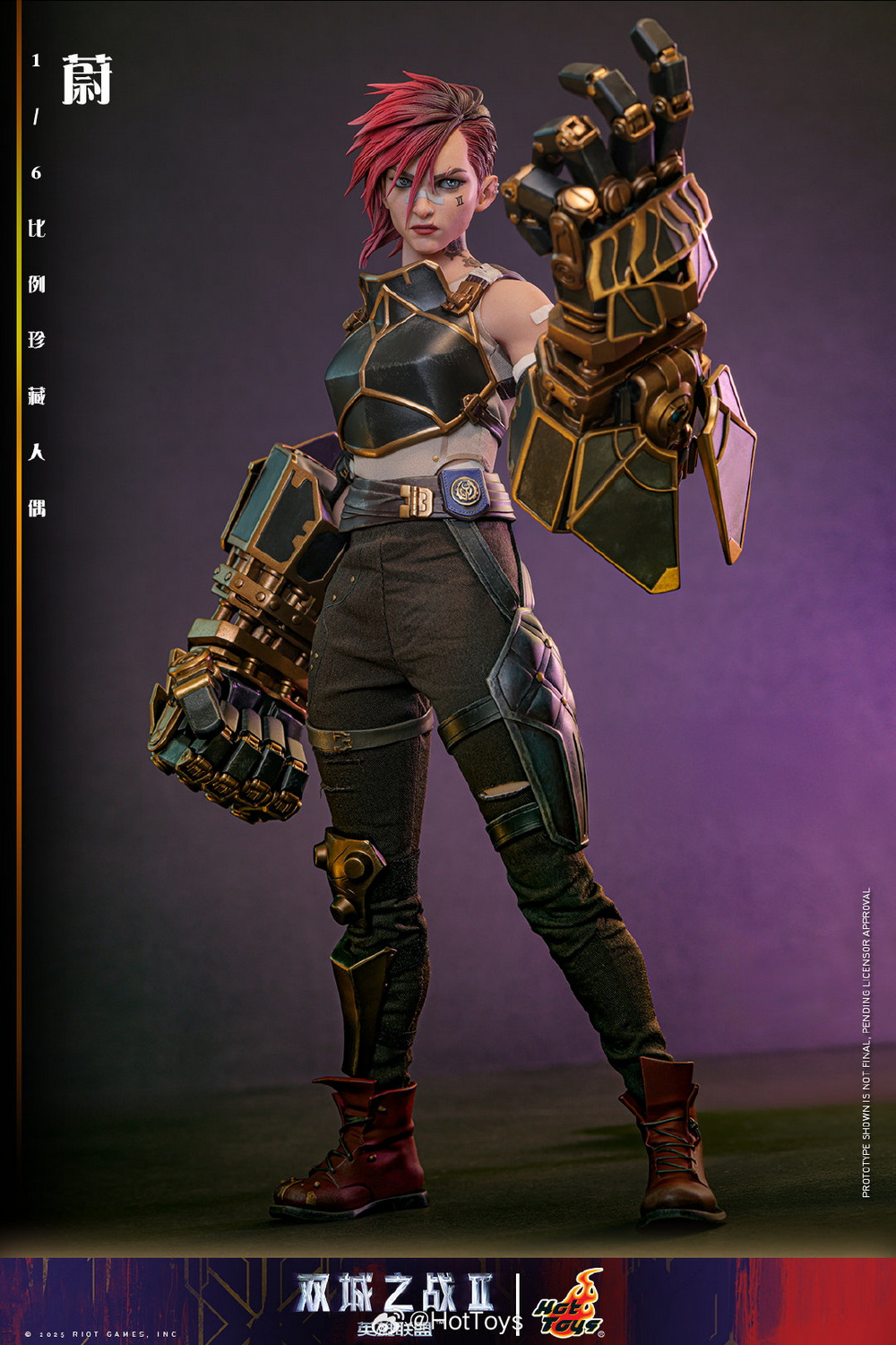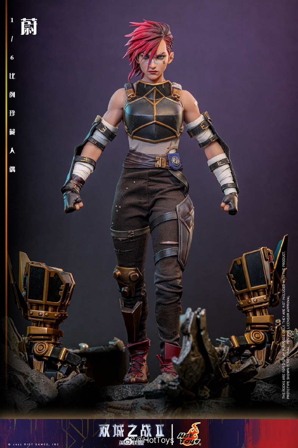 – The Hot Toys team has created a highly realistic character head sculpt with high aesthetic standards and exquisite sculpting and painting techniques, realistically depicting the facial contours, features, and accessories of Vi from the animated series. This includes details such as the iconic Vi tattoo under her left eye, her stylish broken eyebrows, mouth scars, nose ring, earrings, and more, portraying her as a brave guardian with the identity of an underground boxer, grown up in the crisis-ridden city of Zaun.