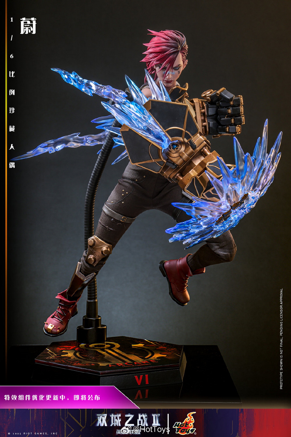 – To further restore the character’s expressions, this head sculpt incorporates movable eye technology, with the pupils featuring animated-style highlights that convey Vi’s determined gaze and her unwavering will to protect her home with her fists in the animated series!