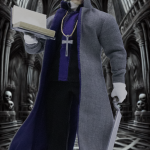 – Precisely sculpted head carving captures Anderson’s intense and devout appearance. Authentic priest suit with a cross necklace, true to his character’s attire. Comes with functional and special hand types for dynamic posing. Equipped with two chopping swords and a Bible, reflecting his role as a warrior-priest.