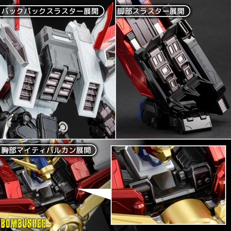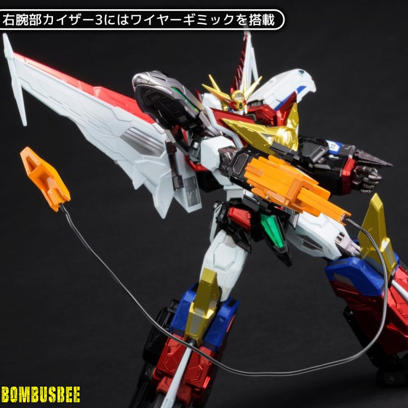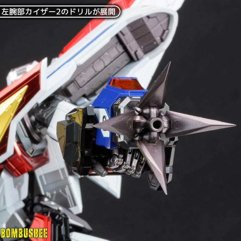 – “Kaiser 2” and “Kaiser 3” on the arms allowing you to enjoy deployment of drill, wire action of crane and attaching to the fist. Furthermore, thrusters on the back pack and legs as well as Mighty Vulcan on the chest can deploy. This figure is full of action gimmicks masterfully rearranged by AMAKUNI KIZIN. Despite being non-transformable, it is an ultimate complete toy model that has transcendent play value!