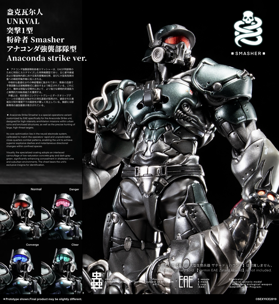 – Anaconda Strike Smasher is a special-operations variant customized by EAE specifically for the Anaconda Strike unit, designed for high-intensity annihilation missions within urban ruins and enclosed structures, as well as the precise hunting of large, high-threat targets.